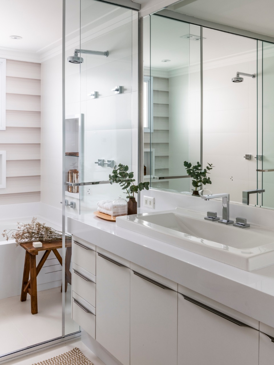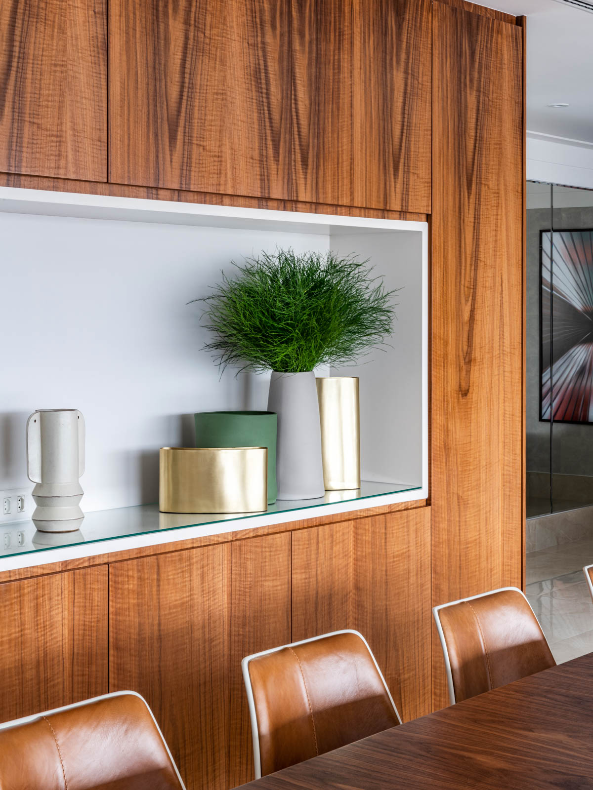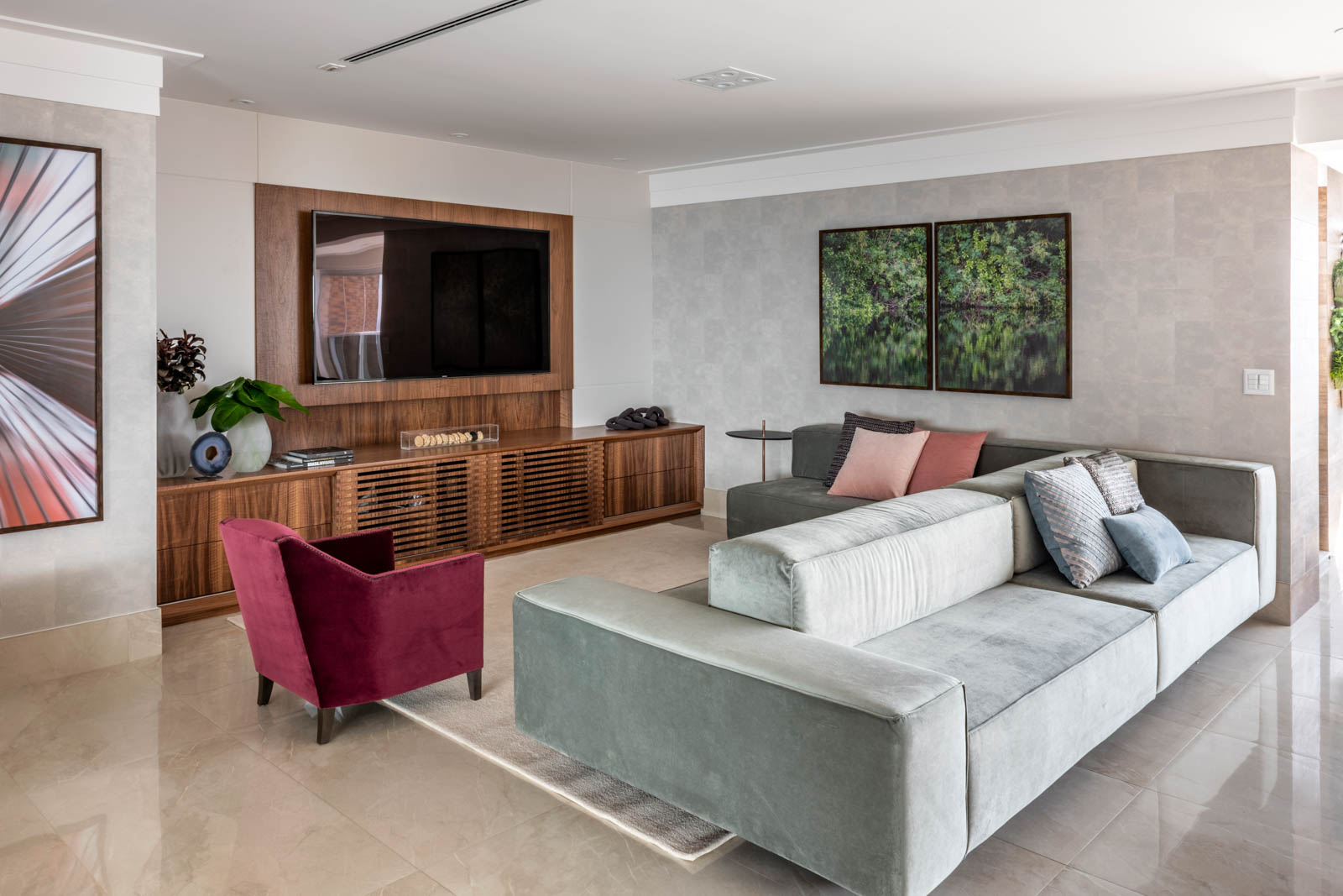 Neste projeto, localizado no Edifício Alhambra de Granada, a integração dos ambientes foi o ponto de partida para criar um lar acolhedor, funcional e ideal para reunir a família. A cliente, uma anfitriã nata, desejava um apartamento que privilegiasse os encontros de final de semana com suas três filhas e os netos — e cada detalhe foi pensado para isso. A área social do apartamento é marcada por uma imponente mesa de jantar para dez lugares, perfeita para momentos em família. Logo atrás, um móvel de apoio foi projetado para facilitar o serviço das refeições, com elegância e praticidade. O living se estende até o terraço gourmet, onde criamos um segundo espaço para refeições, com uma mesa de quatro lugares dedicada especialmente às crianças, garantindo que todos tivessem seu lugar à mesa. No quarto do casal, o pedido foi por um estilo mais clássico — e traduzimos esse desejo com o uso de boiseries nas paredes, criando um ambiente elegante, sereno e atemporal. O banheiro do casal, todo em branco, conta com uma banheira que convida ao relaxamento. O projeto também contempla um confortável quarto de hóspedes, pronto para acolher com charme e comodidade. Este apartamento é, acima de tudo, um espaço de encontros, afetos e boas memórias — exatamente como a cliente sonhou.