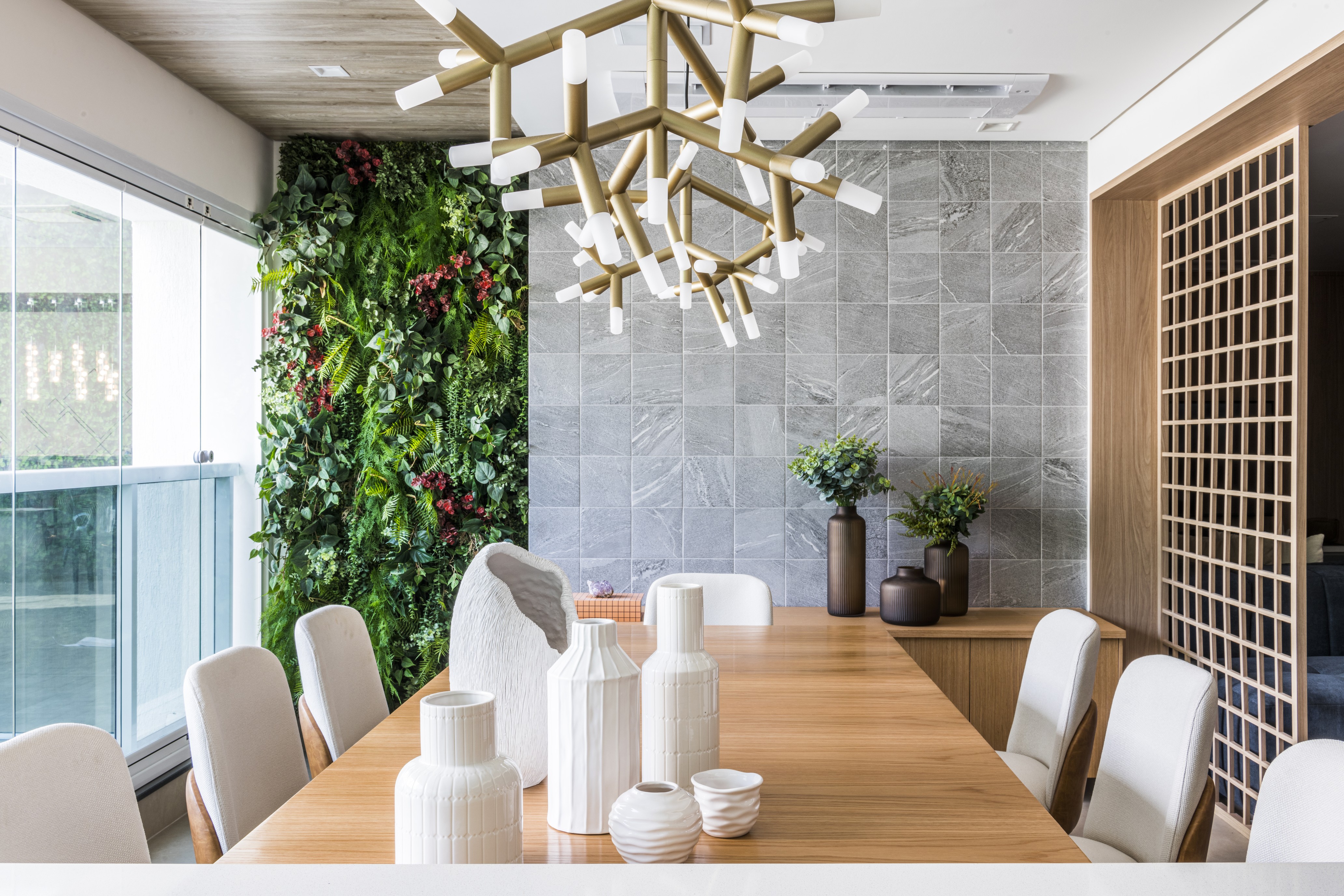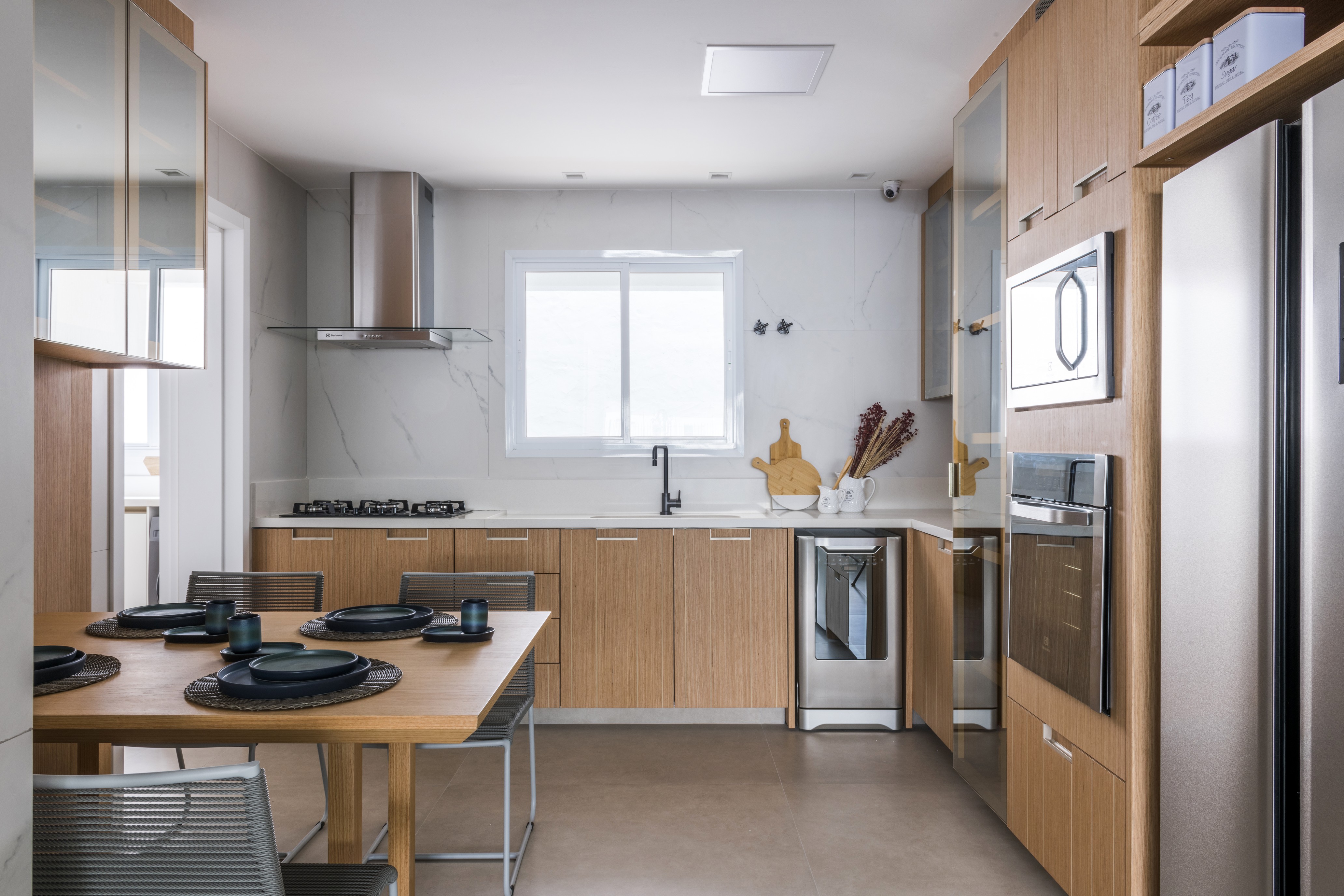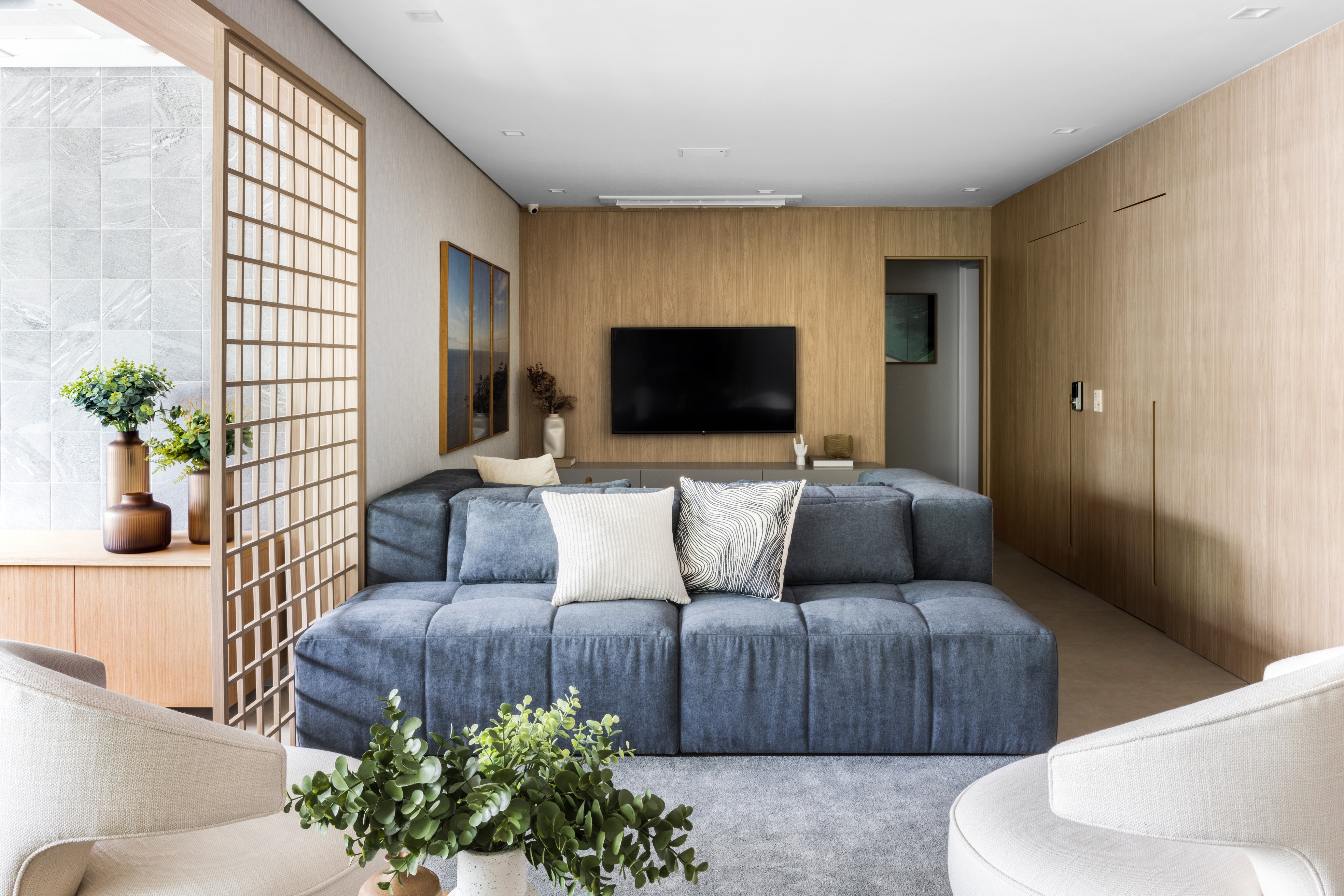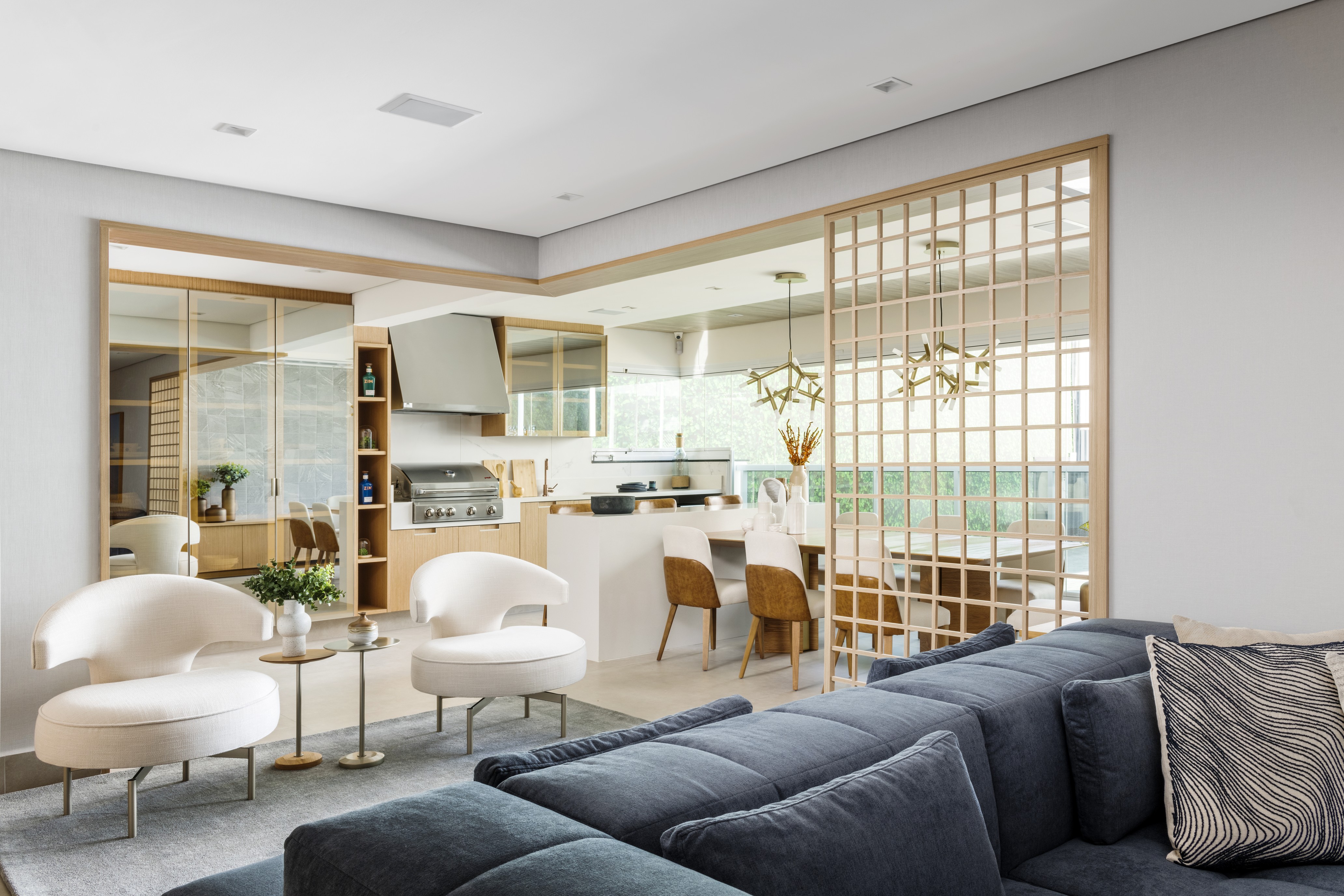 Tive o prazer de assinar o projeto do apartamento decorado para a Construtora Hernandes, no condomínio Plazas de Madrid. O resultado ficou simplesmente encantador — um espaço contemporâneo, acolhedor e extremamente funcional, pensado para valorizar cada metro quadrado com elegância e praticidade. A proposta foi integrar todos os ambientes de forma fluida e harmônica. Logo na área social, destaque para o sofá-ilha, que cria uma conexão inteligente entre a sala de TV e a sala de estar, promovendo encontros mais dinâmicos e acolhedores. A mesa de jantar se conecta com a churrasqueira e o espaço gourmet, que por sua vez se integra à cozinha. Toda essa área foi trabalhada em tons suaves e madeira clara, com destaque para o carvalho americano, que traz leveza e sofisticação ao projeto. O quarto do casal foi pensado como um verdadeiro refúgio. Trabalhei a cor Fendi, que proporciona uma atmosfera serena e aconchegante. Já o banheiro do casal segue a elegância atemporal do clássico preto e branco, uma combinação que nunca sai de moda. Os dois quartos infantis foram desenvolvidos com carinho especial. Cada um deles é lúdico, funcional e estimula a criatividade das crianças, sem abrir mão da organização e da beleza. Esse projeto traduz minha essência: unir estética, conforto e funcionalidade, criando lares que tocam e transformam vidas.