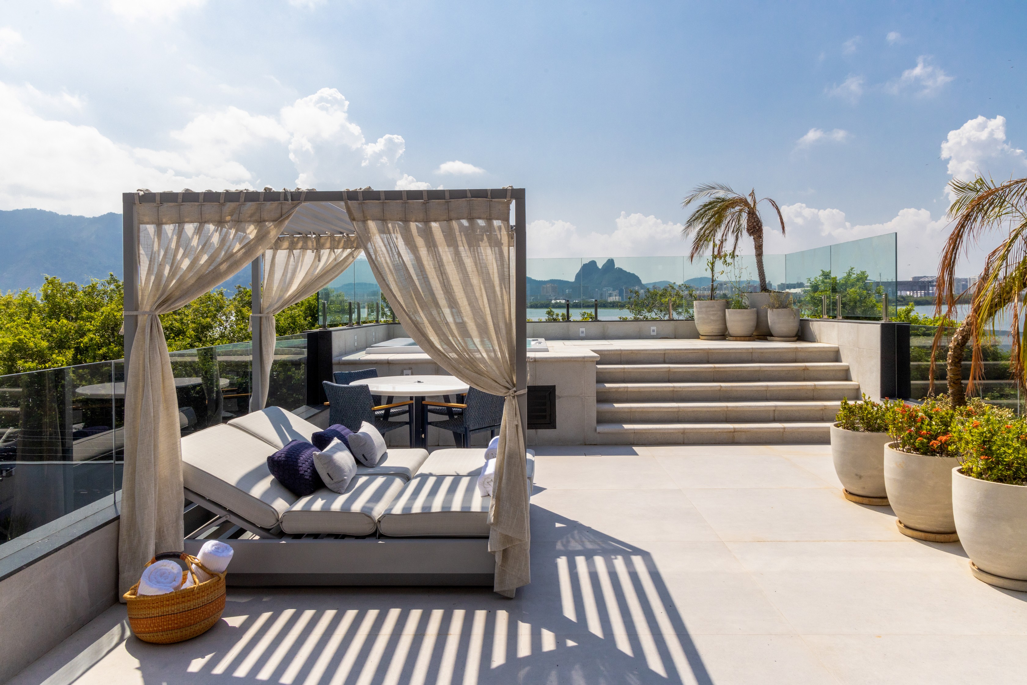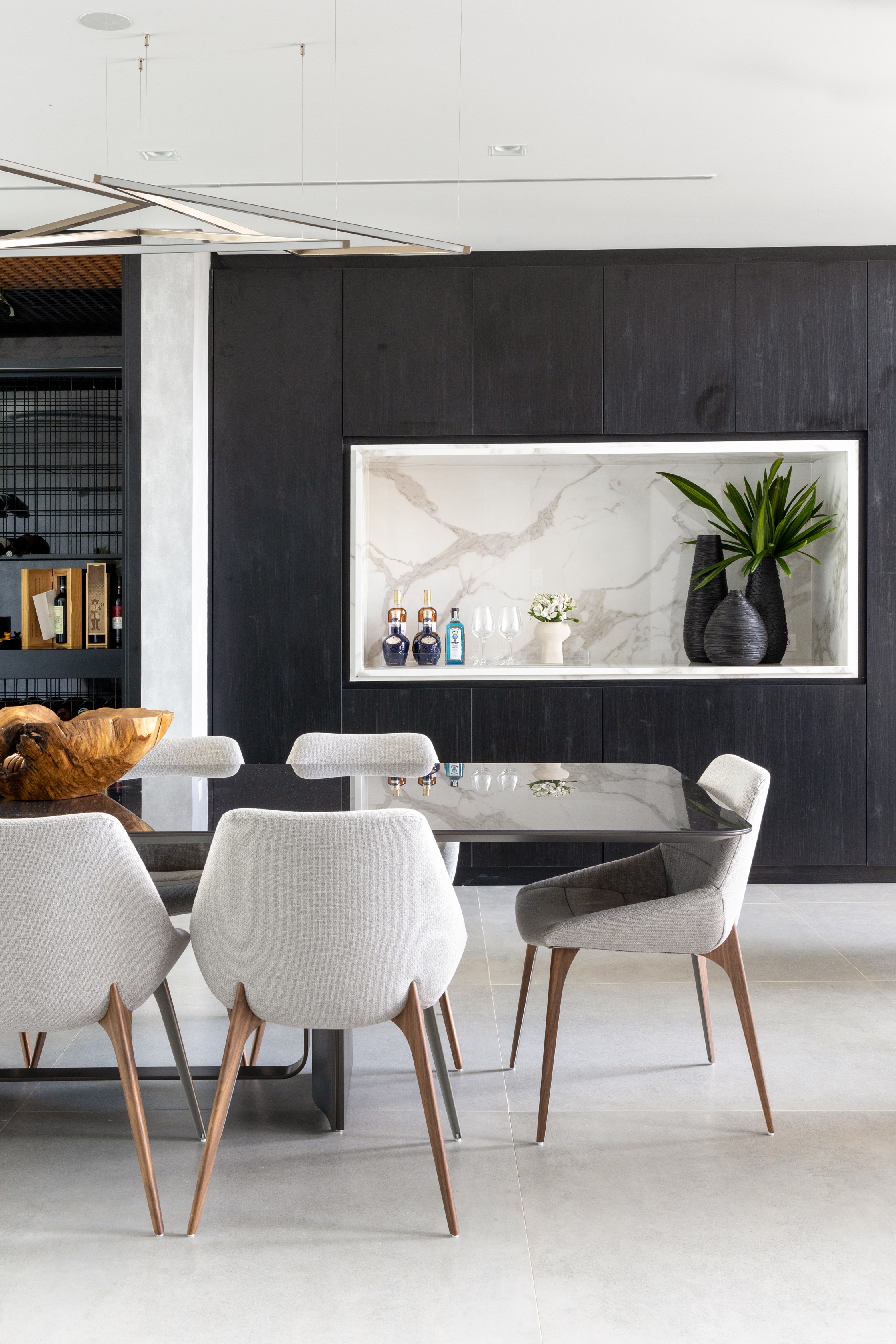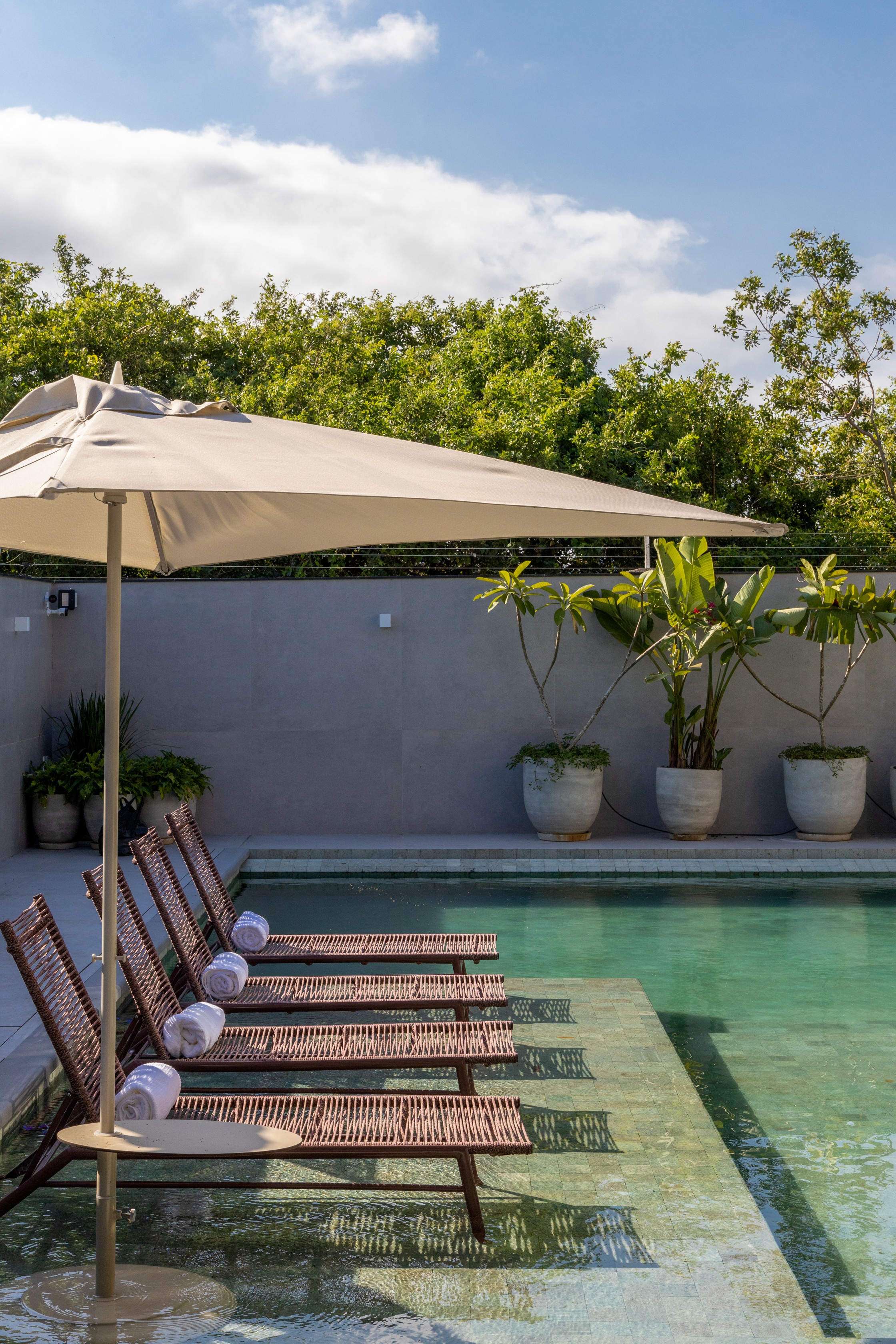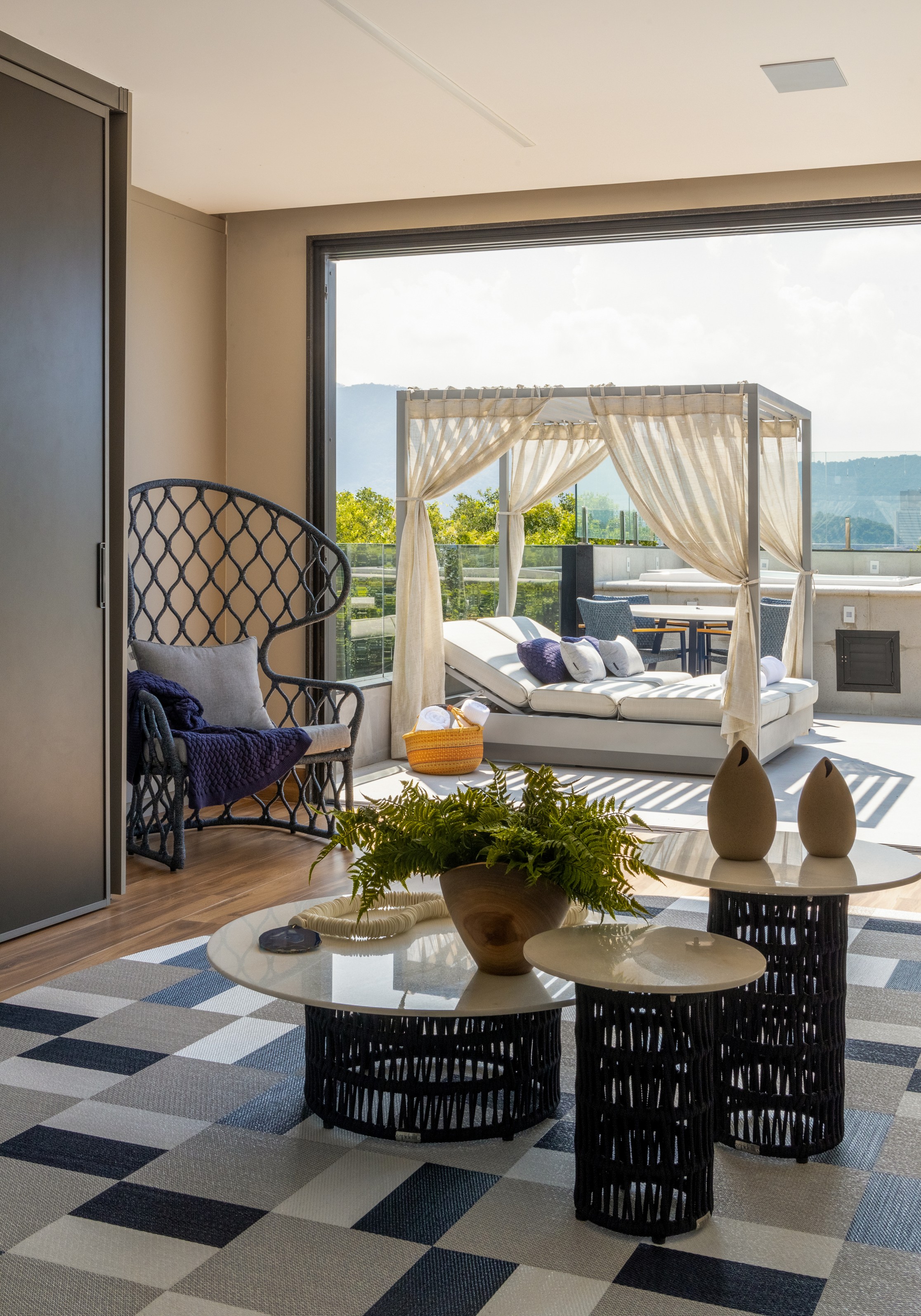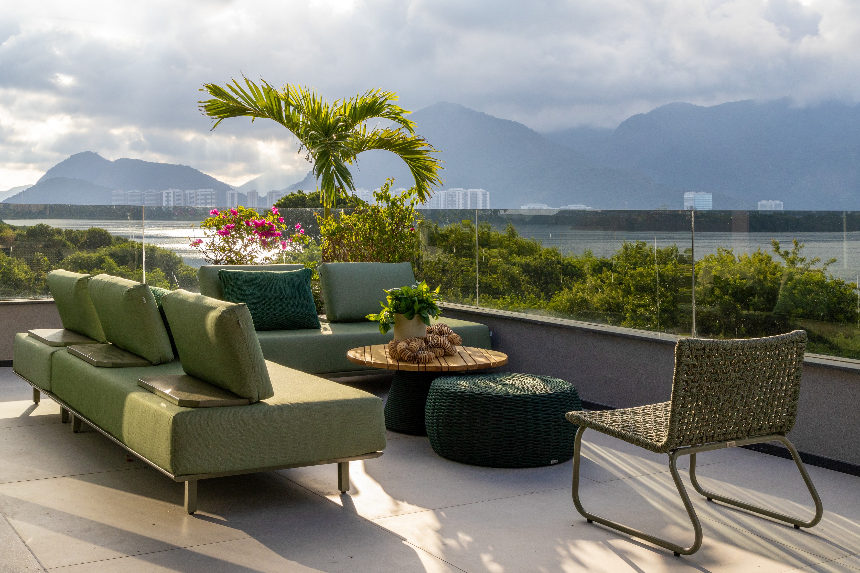 Tive o prazer de decorar esta casa de veraneio na Barra da Tijuca, no Rio de Janeiro, para uma cliente muito querida que reside em São Paulo. O pedido era claro: criar um lar acolhedor e funcional, com clima de férias, mas sem abrir mão da sofisticação. Na área externa, desenhei um ambiente perfeito para os momentos de lazer. A piscina, ponto central da casa, é abraçada por uma churrasqueira integrada e um mobiliário pensado para relaxar com estilo — tudo em perfeita harmonia com o paisagismo tropical ao redor. A cozinha foi desenvolvida com foco na praticidade. Totalmente branca, recebeu materiais tecnológicos que garantem durabilidade e facilidade no dia a dia, sem perder o frescor visual que combina com a proposta da casa. Na sala de estar, o pé-direito duplo proporciona imponência e amplitude. Apostei em um pendente escultural que se tornou protagonista no ambiente, além de um tapete em tons de azul que remete ao mar, conectando o interior ao cenário praiano. A sala de jantar, com uma paleta atemporal, se destaca pelos armários com nicho central em mármore Calacata, trazendo um toque de sofisticação e equilíbrio. O quarto do casal segue a mesma linguagem suave da casa, com tons claros e uma cabeceira em linho azul-marinho, evocando a brisa do mar em cada detalhe. Na varanda privativa, criamos um verdadeiro spa com hidromassagem e um bangalô para momentos de descanso e contemplação. O banheiro do casal foi desenhado com uma proposta minimalista e contemporânea: todo branco, com metais em preto fosco — um contraste elegante que resultou em um espaço clean e extremamente luxuoso. Para o quarto do filho, a ideia foi traduzir personalidade e versatilidade. Trabalhamos com duas camas de solteiro, permitindo receber amigos, e decoramos com quadros que homenageiam ícones do rock, como Freddie Mercury e Kurt Cobain, dando um ar moderno e descontraído ao ambiente. No rooftop, projetamos uma área com mobiliário verde em tecido tecnológico, resistente ao sol e à chuva, ideal para aproveitar a vista e relaxar ao ar livre em qualquer estação. O resultado é uma casa que traduz exatamente o espírito do Rio: leve, elegante, com alma praiana e momentos inesquecíveis ao lado de quem se ama.